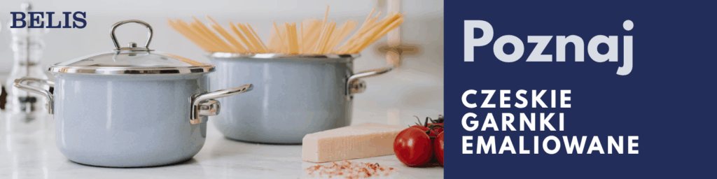 - Belis (Republika Czeska): Czechy to obecnie nasz najbliższy ośrodek produkcji emalii. Marka Belis z Czeskich Budziejowic kontynuuje tradycje dawnej marki Sfinx. Ich garnki słyną z wysokiej jakości – gruba blacha 1,2–2 mm i podwójna warstwa emalii. Belis produkuje zarówno tradycyjne garnki (seria Sfinx – charakterystyczne, czarne naczynia z granatowym wnętrzem), jak i linie premium. W swojej ofercie posiadają też kultową serię w grochy. Czeskie garnki Belis uchodzą za jedne z najlepszych w Europie. Dla poszukujących trwałości – to bardzo dobry wybór.