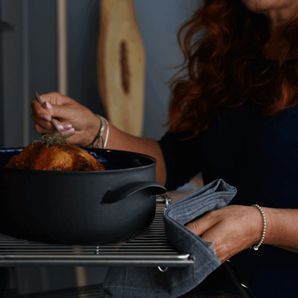 Po wyjęciu z lodówki garnka z zupą czy gulaszem możemy go od razu postawić na palnik i odgrzać – stopniowe podgrzewanie na małym ogniu zapewni, że naczynie się równomiernie nagrzeje. W ten sposób emaliowany garnek spełnia rolę zarówno naczynia do gotowania, jak i pojemnika do przechowywania – mniej zmywania i wygoda dla użytkownika.