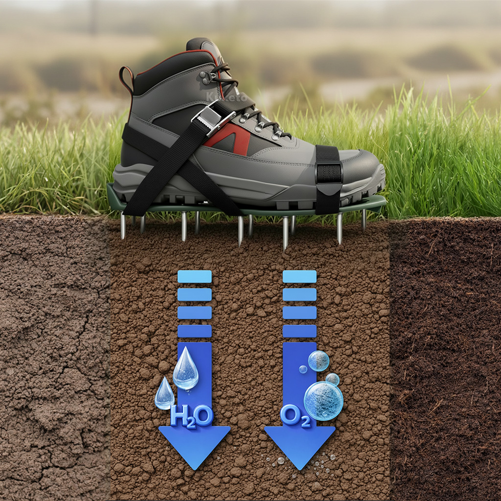 Zestaw zawiera komplet śrub, nakrętek oraz klucz montażowy, dlatego samodzielnie przygotujesz aerator do pracy. Montaż jest prosty i nie wymaga specjalistycznych narzędzi. Po skręceniu kolców wystarczy dopasować paski do butów i rozpocząć napowietrzanie. To ekonomiczna alternatywa dla drogich wertykulatorów i aeratorów mechanicznych. Jednocześnie pozwala uzyskać bardzo dobre efekty przy minimalnym nakładzie pracy.