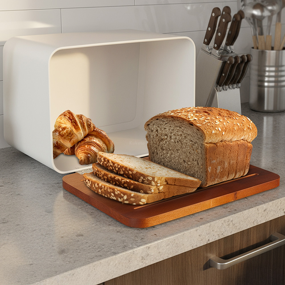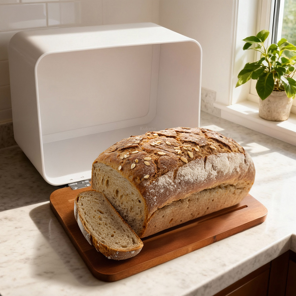 Chlebak Husla to nie tylko estetyka, ale też wygoda i praktyczność. Jest przeznaczony do przechowywania wszelkiego rodzaju pieczywa, od świeżych bułek po duże bochenki chleba. Zamknięta konstrukcja zapewnia odpowiednią cyrkulację powietrza, co pozwala na dłużej zachować świeżość produktów, chroniąc przed wyschnięciem lub pleśnieniem. Co ważne, chlebak jest częścią większej kolekcji, która obejmuje także pojemniki na kawę, herbatę i cukier. Wszystkie te elementy wykonano w tym samym stylu, co pozwala stworzyć spójny i harmonijny komplet na blacie kuchennym. Dzięki temu, oprócz funkcjonalności, wprowadzisz do swojej kuchni estetyczny porządek.