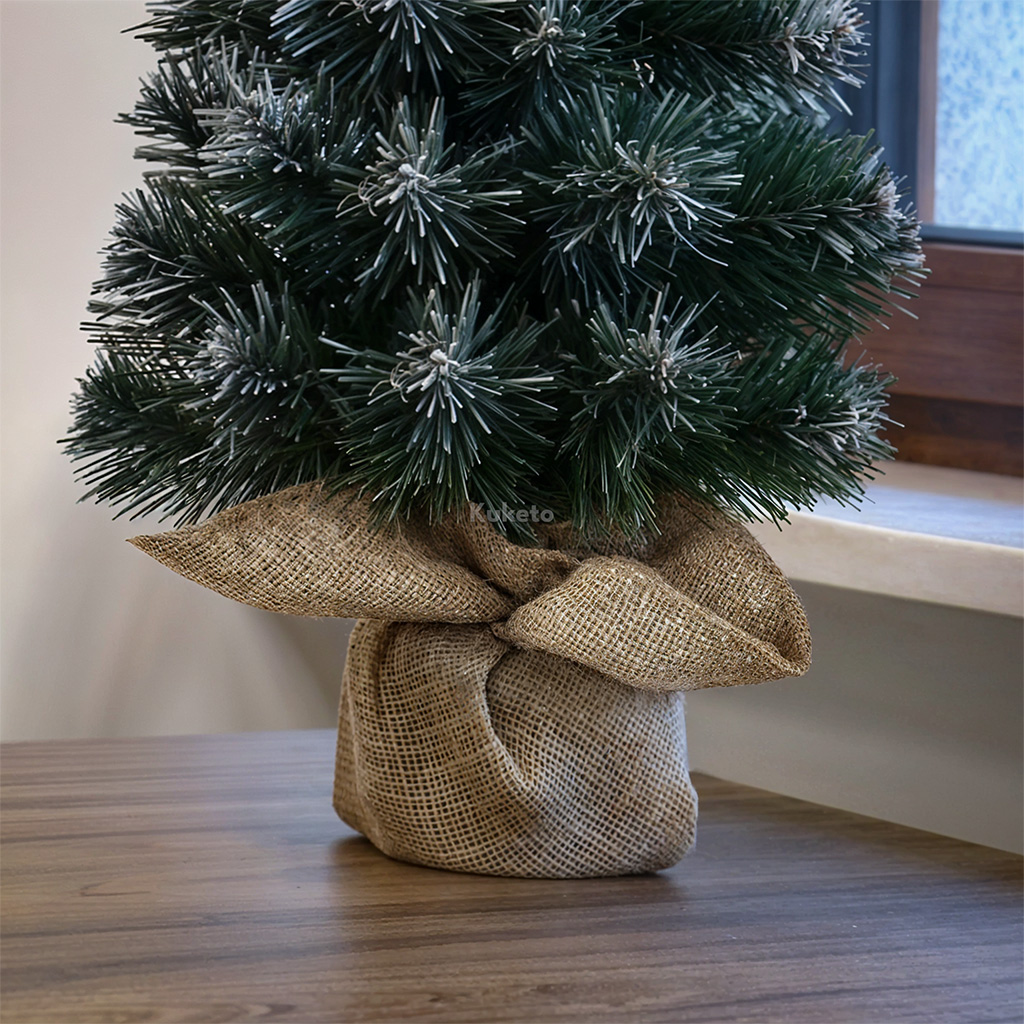 Choinka została wykonana z wysokiej jakości tworzywa sztucznego, które doskonale odwzorowuje strukturę naturalnych igieł. Gałązki są gęste, sprężyste i trwałe, dzięki czemu zachowują swój kształt przez wiele sezonów. Delikatne ośnieżenie sprawia, że drzewko wygląda świeżo i elegancko, a naturalna juta, w którą owinięto stabilną donicę, dodaje jej rustykalnego charakteru. Taka forma prezentacji sprawia, że choinka idealnie pasuje zarówno do wnętrz w stylu klasycznym, jak i nowoczesnym.