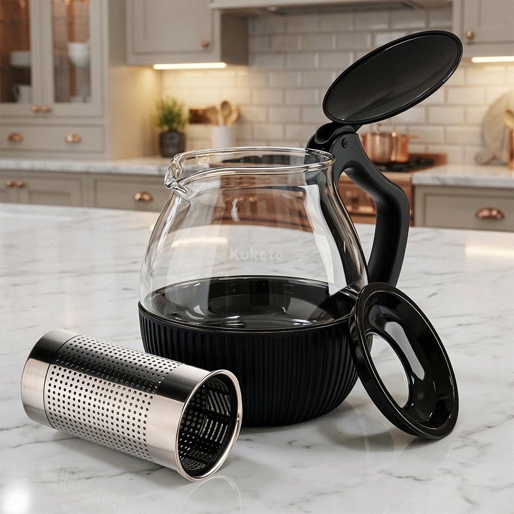 Dzbanek szklany 1800ml z zaparzaczem Kuketo – idealny do codziennego parzenia herbaty