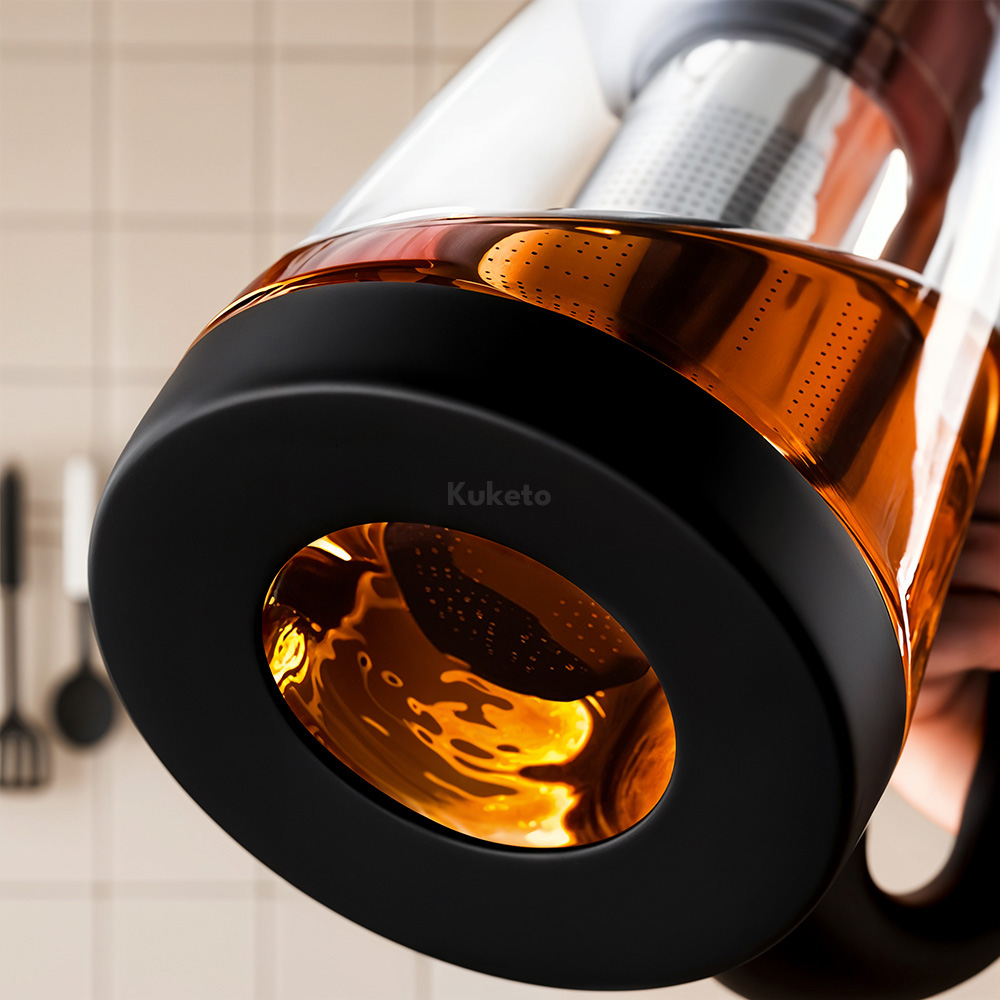 Dzbanek szklany 2200ml z zaparzaczem Etna Kuketo to praktyczne i eleganckie rozwiązanie dla osób, które często przygotowują większą ilość naparów. Dzięki pojemności 2,2 litra możesz serwować herbatę lub zioła dla kilku osób jednocześnie, co znacząco ułatwia spotkania rodzinne i pracę w biurze. Szkło żaroodporne bezpiecznie znosi kontakt z wrzątkiem, dlatego nie musisz czekać, aż woda lekko ostygnie. Co więcej, dzbanek zachowuje przejrzystość przez długi czas, a jego solidna konstrukcja podnosi komfort codziennego użytkowania.