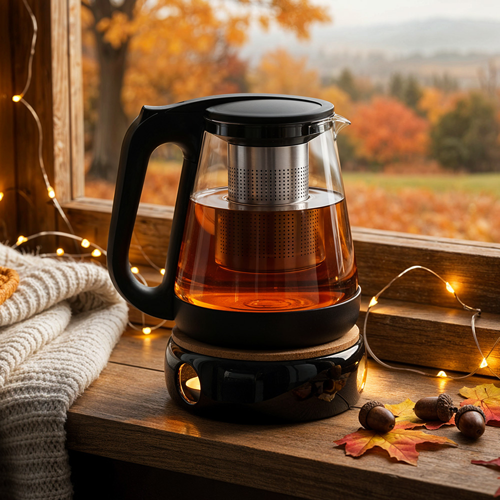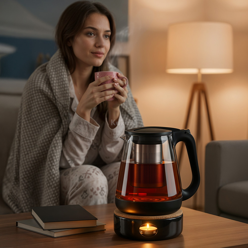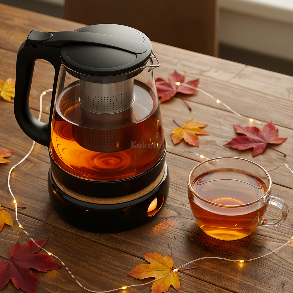 Dzbanek szklany Etna 2200l z zaparzaczem i ceramicznym podgrzewaczem Kuketo to praktyczny zestaw do codziennego parzenia herbaty i naparów. Już przy pierwszym użyciu zachwyca wygodą, a także eleganckim wyglądem. Co więcej, przezroczyste szkło pozwala obserwować proces parzenia, natomiast stalowy zaparzacz wydobywa intensywny smak ulubionych liści. Ceramiczny podgrzewacz utrzymuje ciepło przez długi czas, dzięki czemu możesz cieszyć się napojem bez pośpiechu.