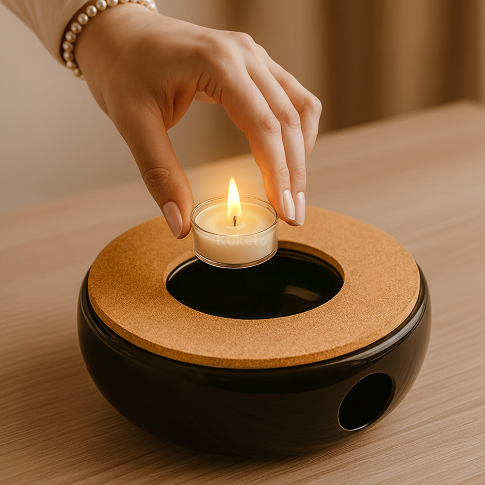 Do zestawu dołączono ceramiczny podgrzewacz, który zapewnia równomierne i delikatne ogrzewanie dna dzbanka. Wystarczy włożyć świeczkę tealight, aby napój pozostał ciepły przez długi czas. Ponadto ceramika jest stabilna i odporna na wysokie temperatury, co zwiększa bezpieczeństwo podczas użytkowania. Minimalistyczny design idealnie uzupełnia wygląd dzbanka, a jednocześnie tworzy przytulny, nastrojowy efekt świetlny.