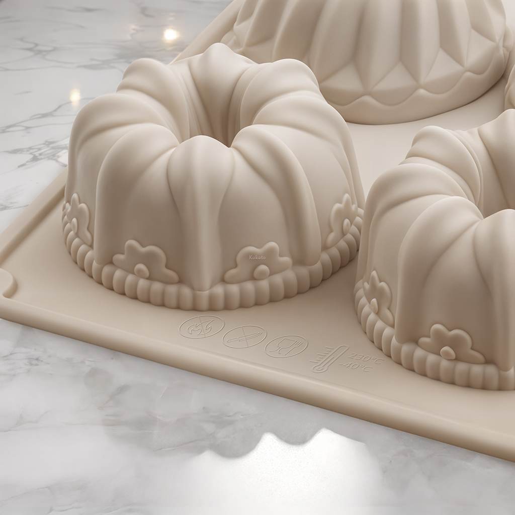Forma silikonowa Kuketo na 6 mini babeczek to praktyczne i estetyczne rozwiązanie do pieczenia muffinek oraz mini-ciast. Wykonano ją z elastycznego silikonu spożywczego, który zapewnia wygodę użytkowania. Dzięki temu z łatwością wyjmiesz gotowe wypieki bez uszkadzania ich kształtu. Co więcej, dekoracyjne formy nadają babeczkom wyjątkowy wygląd. Dlatego sprawdzi się idealnie podczas świąt, rodzinnych spotkań i domowych przyjęć. Dodatkowo forma jest lekka i łatwa w przechowywaniu.
