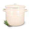 Duży garnek emaliowany jest koniecznym wyposażeniem kuchni — ugotowanie dużej główki kapusty na gołąbki, przygotowanie przetworów lub dania na kilka dni typu bogracz, zupa gulaszowa tylko w dużym garnku! GARNEK EMALIOWANY z pokrywką o pojemności 16 litrów i średnicy 32 cm. Mimo że jest to prosty garnek emaliowany, wyglądem nie przypomina tradycyjnych garnków emaliowanych z kuchni naszych babć. Wszystko za sprawą koloru i surowego wykończenia rantów.
