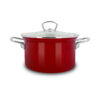 Garnki Belis posiadają emaliowane uchwyty oraz emaliowana pokrywkę. Garnki w kolorze czarnym będą dobrze współgrały z elegancką kuchnią w ciemnej tonacji. Gastronomiczny garnek emaliowany działa na wszystkich rodzajach kuchni — to także garnek na indukcję, trzeba jednak pamiętać, że garnek jest duży i ciężki.