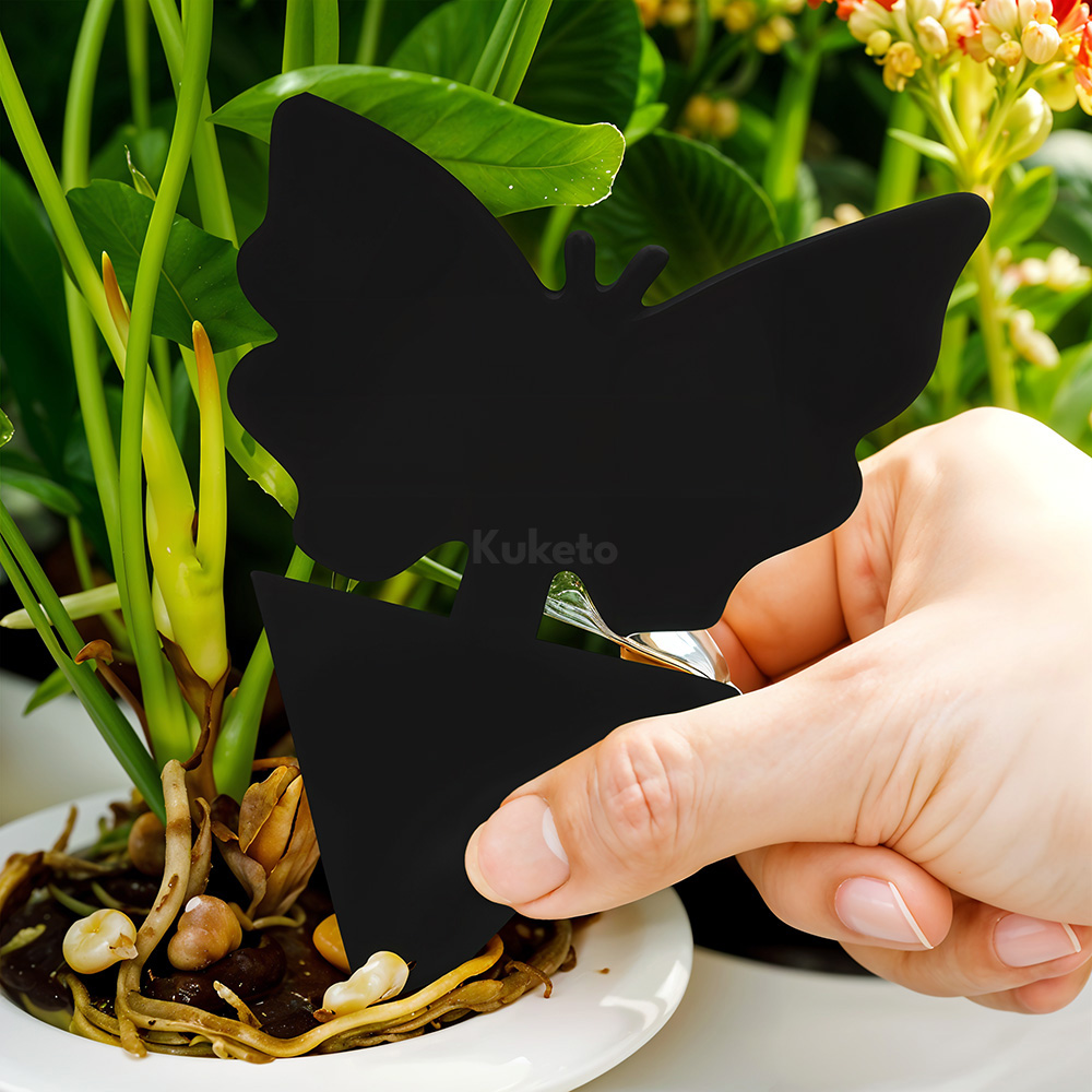 W komplecie znajduje się 12 sztuk lepu w kształcie motyla. Każdy lep ma wysokość 13 cm i szerokość 8 cm, dlatego zapewnia dużą powierzchnię działania. Czarny kolor sprawia, że owady są mniej widoczne, a doniczka zachowuje estetyczny wygląd. Tworzywo sztuczne odporne na wilgoć i promienie słoneczne gwarantuje trwałość. Co więcej, pułapki można stosować w domu, na balkonie i w szklarni. W rezultacie rośliny zyskują pełną ochronę w każdych warunkach.