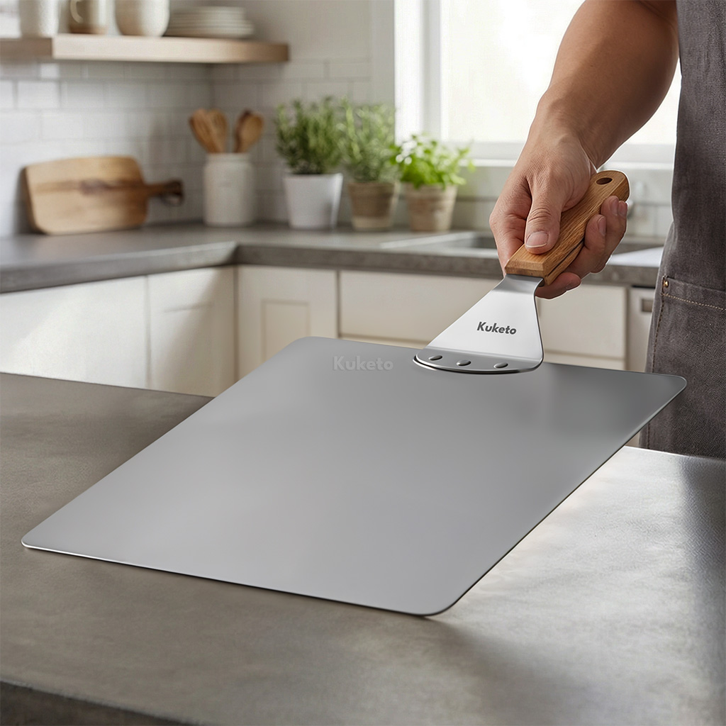 Kwadratowa łopata Kuketo to narzędzie bardzo uniwersalne. Sprawdzi się przy pizzy, chlebie, focaccii, plackach i różnych ciastach. Sztywna powierzchnia umożliwia przenoszenie delikatnych wypieków bez ryzyka ich uszkodzenia. To świetna propozycja dla osób, które lubią eksperymentować i potrzebują akcesoriów o szerokim zastosowaniu. Stal nierdzewna jest odporna na wysokie temperatury i odkształcenia, co przekłada się na długą żywotność produktu.