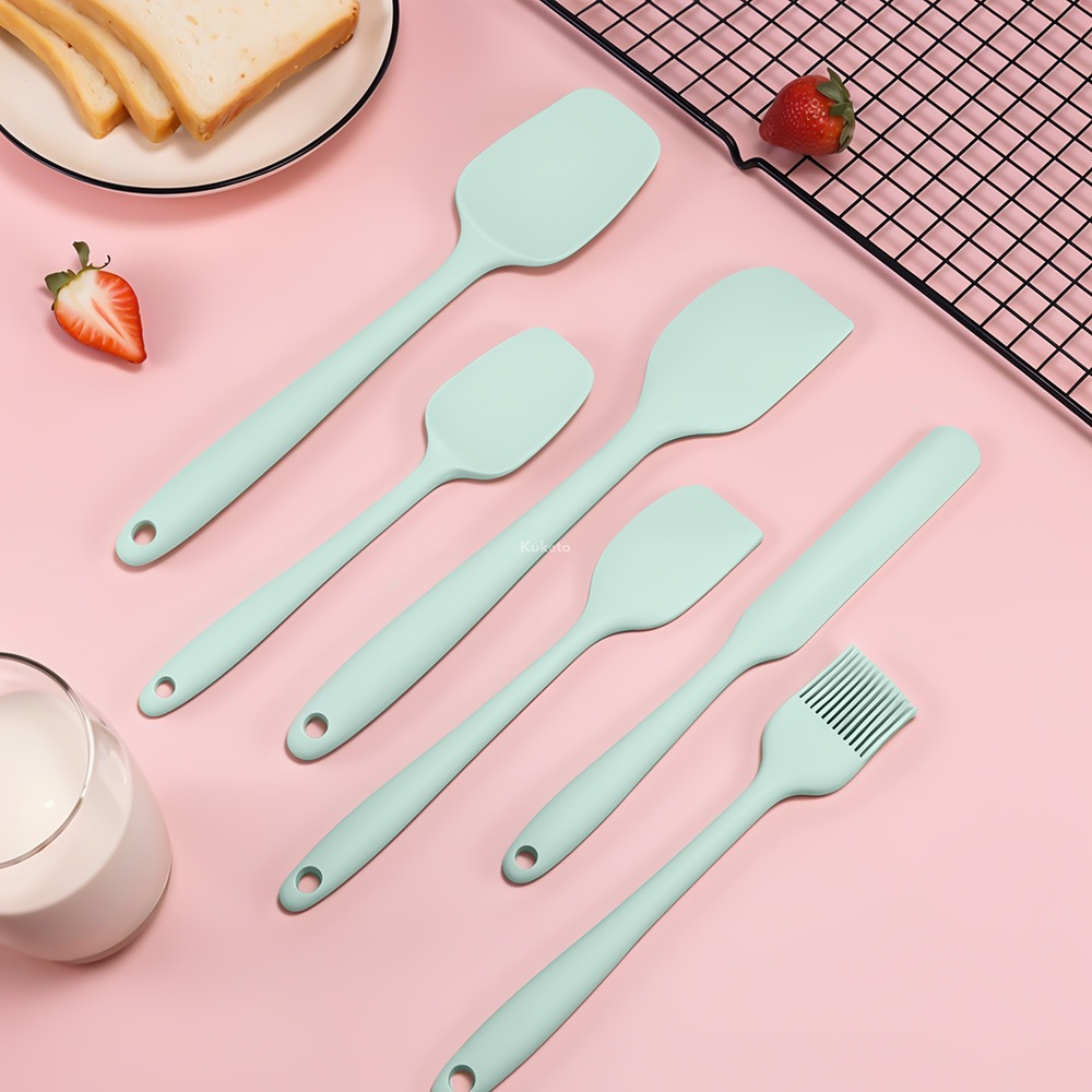 Każdy element zestawu wykonano z wysokiej jakości silikonu odpornego na wysokie temperatury. Materiał jest elastyczny, nie pochłania zapachów i nie odkształca się nawet przy częstym użytkowaniu. Ponadto silikon nie rysuje naczyń, dlatego można go bezpiecznie używać w garnkach i patelniach emaliowanych, ceramicznych czy teflonowych. Zestaw doskonale sprawdzi się zarówno w kuchni amatora, jak i pasjonata domowych wypieków. Wałek z drewnianym uchwytem oraz pojemnik z miarką do 1000 ml sprawiają, że przygotowywanie ciasta staje się szybkie, dokładne i przyjemne.