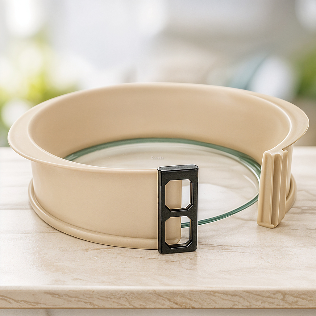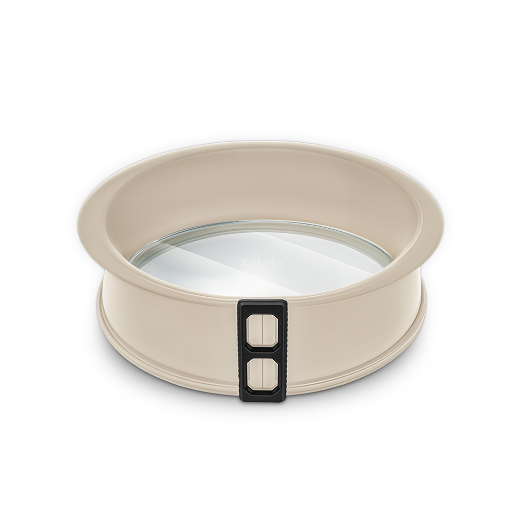Tortownica silikonowa 26 cm Kuketo to praktyczne połączenie formy do pieczenia i eleganckiego naczynia do podawania deserów. Dzięki konstrukcji 2w1 możesz przygotować i serwować wypiek w tym samym naczyniu. Kremowy silikon i przezroczyste szkło tworzą estetyczny duet, który świetnie prezentuje się w każdej kuchni. To idealny wybór dla osób ceniących trwałość, wygodę i styl w jednym produkcie.