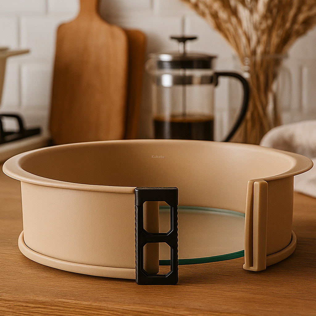 Forma wykonana jest z silikonu spożywczego odpornego na temperatury od -40°C do +200°C. Doskonale sprawdza się zarówno w piekarniku, jak i w zamrażarce. Elastyczne ścianki ułatwiają wyjmowanie ciasta, a hartowane szkło na spodzie gwarantuje stabilność i równomierne pieczenie. Po zakończeniu przygotowań forma może służyć także jako talerz do serwowania – wygląda elegancko i nie wymaga przekładania wypieku.