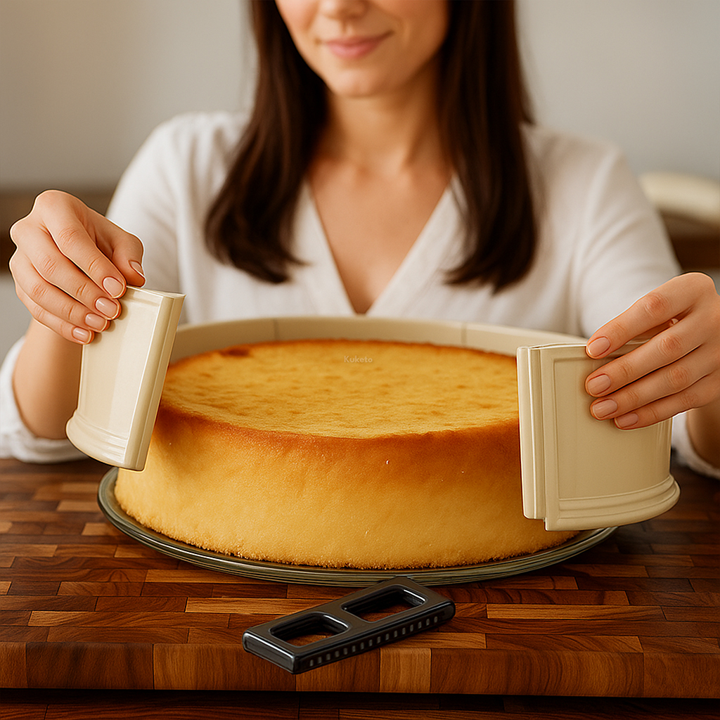 ✅ Bezpieczny zacisk umożliwia szybkie otwarcie formy, chroniąc wypiek przed uszkodzeniem.