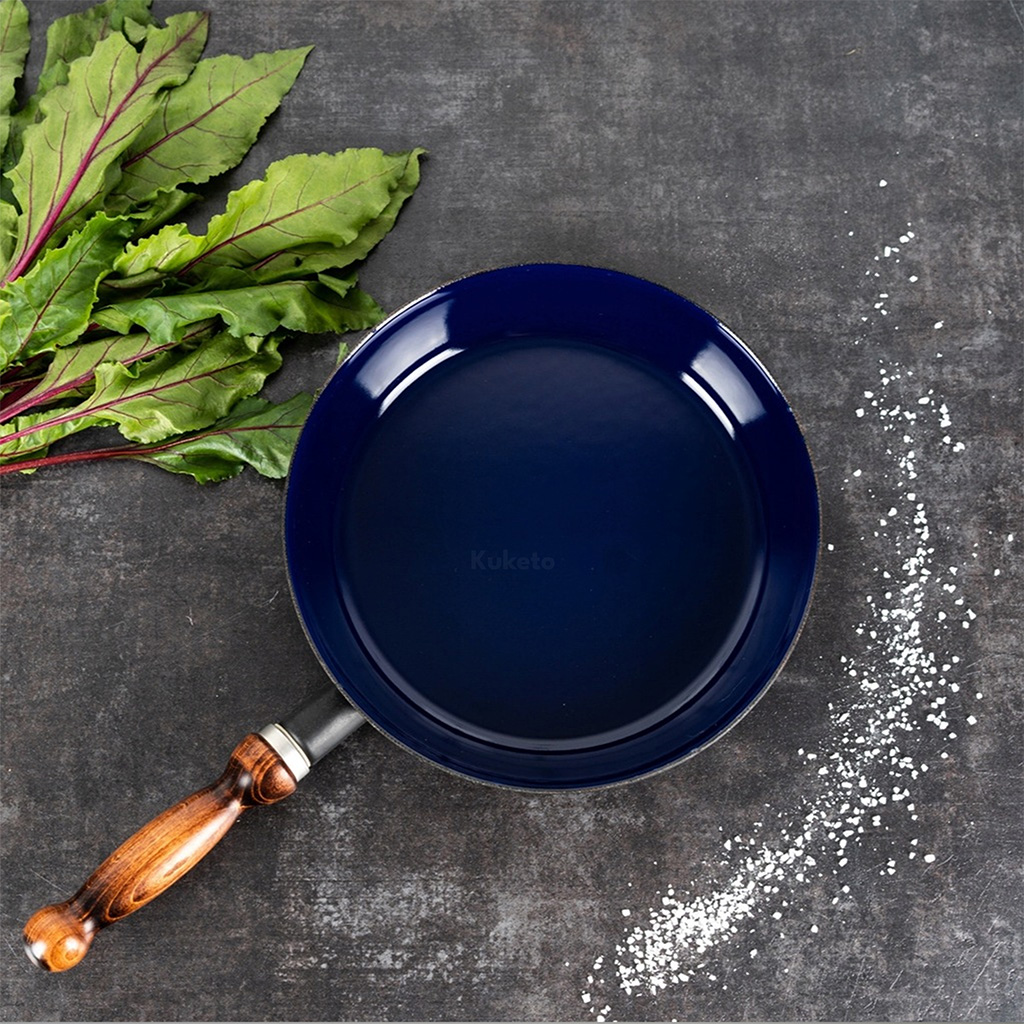 Emalia nie wchodzi w reakcje z żywnością, dlatego nie zmienia smaku ani zapachu potraw. Ponadto jest antyalergiczna i nie zawiera szkodliwych substancji, co czyni patelnię bezpiecznym wyborem dla całej rodziny. Gładka powierzchnia ułatwia czyszczenie, a jednocześnie zapobiega przywieraniu resztek jedzenia. Dzięki temu patelnia zachowuje estetyczny wygląd przez długi czas.
