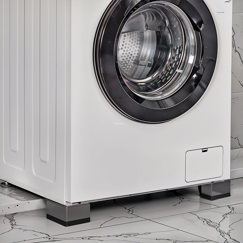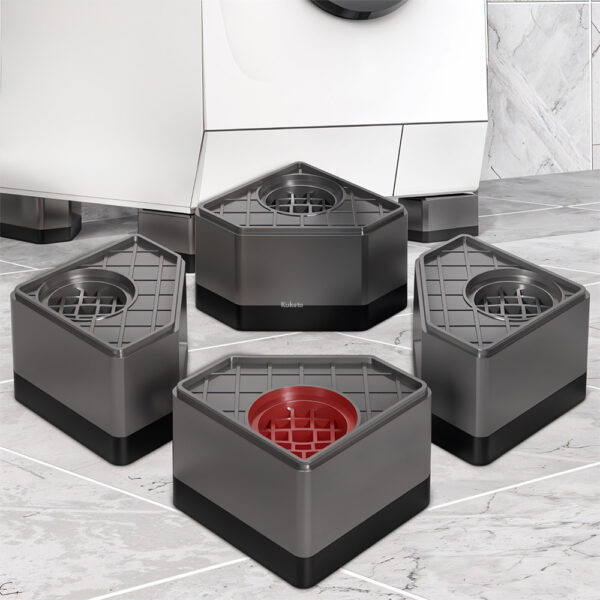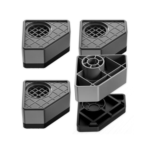 Każda podkładka ma maksymalny udźwig aż do 500 kg, dlatego bez problemu poradzi sobie nawet z ciężką pralką czy lodówką. Ponadto antypoślizgowa powierzchnia od spodu zapobiega przesuwaniu się sprzętu, co znacząco zwiększa stabilność i bezpieczeństwo podczas pracy. Dzięki temu nie musisz martwić się o przesuwanie pralki podczas wirowania ani o nierówne ustawienie suszarki. W rezultacie sprzęty AGD działają ciszej, stabilniej i są lepiej zabezpieczone.