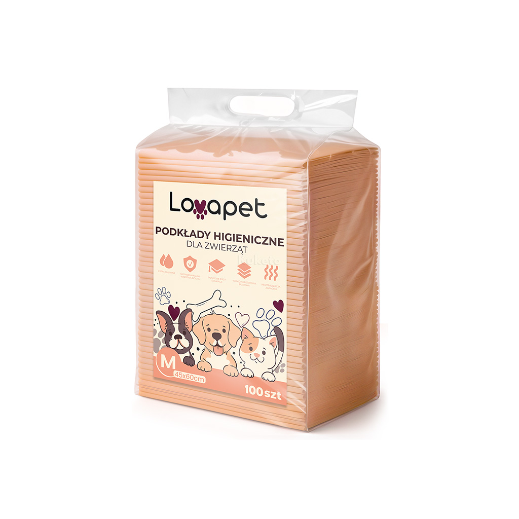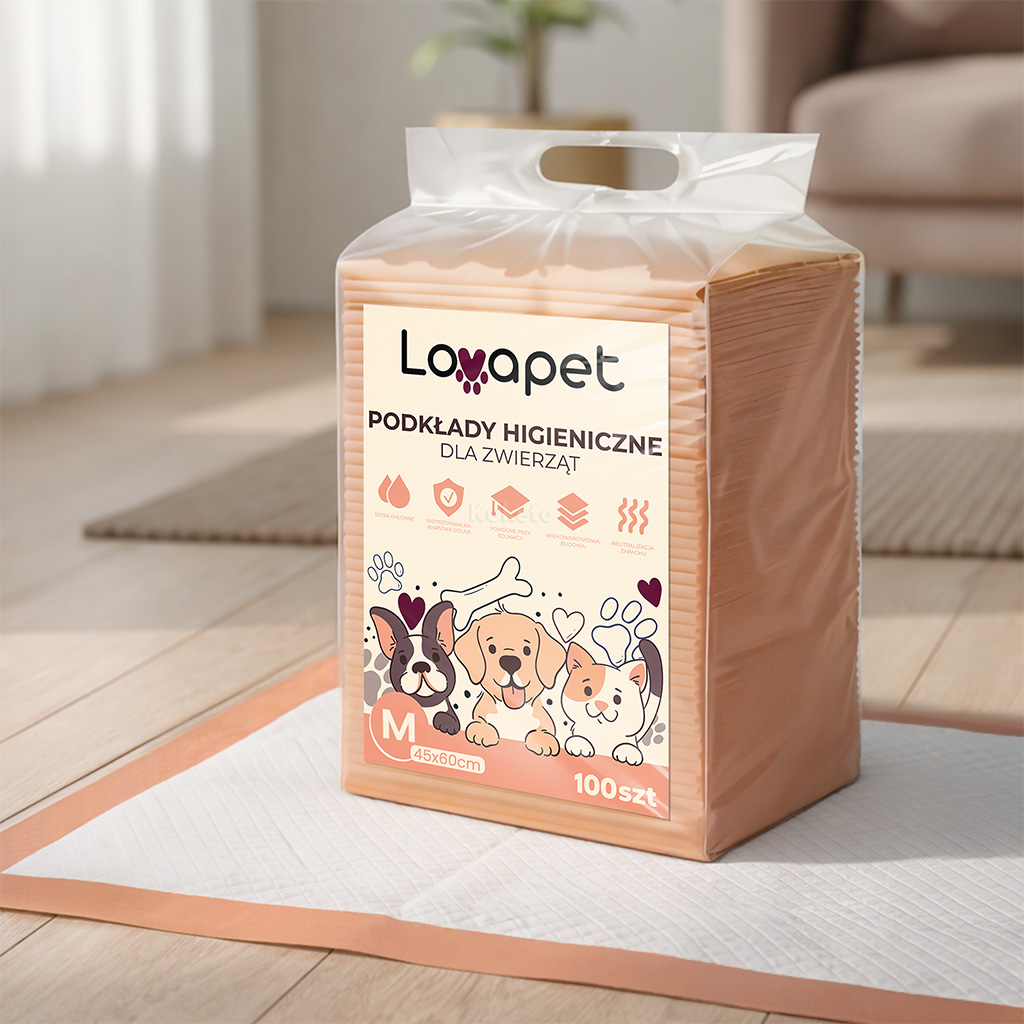 Podkłady higieniczne dla psa 45×60 cm 100 sztuk Lovapet to praktyczne i wygodne rozwiązanie do codziennej opieki nad pupilem. Sprawdzają się zarówno podczas nauki czystości u szczeniąt, jak i przy opiece nad psami dorosłymi, starszymi lub chorymi. Dzięki kompaktowemu rozmiarowi oraz dużej liczbie sztuk w opakowaniu zapewniają wygodę użytkowania i stałą kontrolę nad higieną w domu. Możesz stosować je w mieszkaniu, klatce, transporterze, a także w samochodzie podczas podróży.