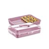 Plastikowy pojemnik, nie musi być przeznaczony jedynie na ciasto. W środku możemy schować owoce, kanapki, czy innego rodzaju żywność, którą później skonsumujemy na przykład podczas pikniku, czy na imprezie rodzinnej. Pojemniki dostępne są w czterech kolorach: różowy, miętowy, biały i kawowy.