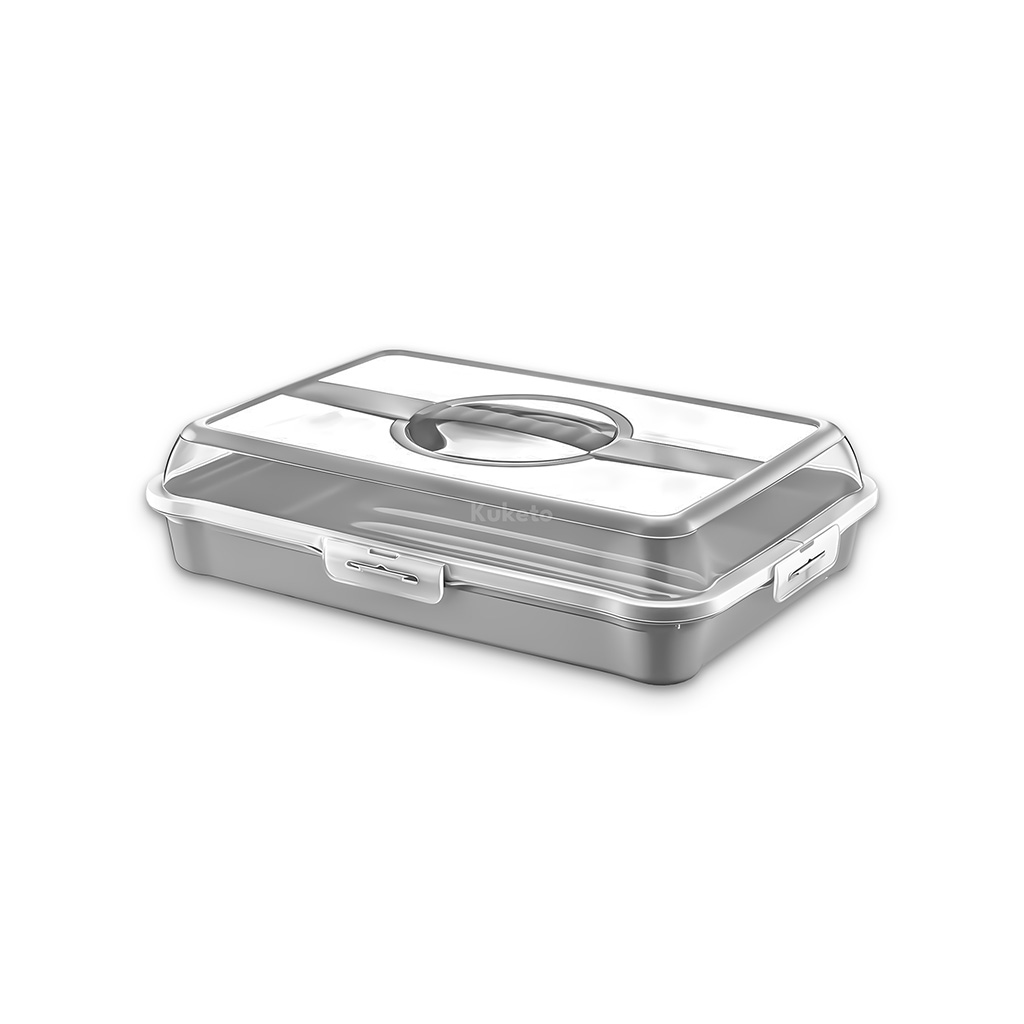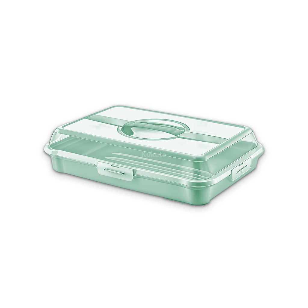 Profesjonalny pojemnik na ciasto, w którym z łatwością przetransportujemy placek. Duży pojemnik z przykrywką zabezpieczy wypieki przed uszkodzeniem, połamaniem lub ukruszeniem. Wygodne zamykanie uchroni zawartość przed zabrudzeniem, np. okruchami, kurzem. Zasobnik doskonale sprawdzi się także do przechowywania placków w lodówce dzięki szczelnej pokrywce nie wyschną i będą dłużej świeże.