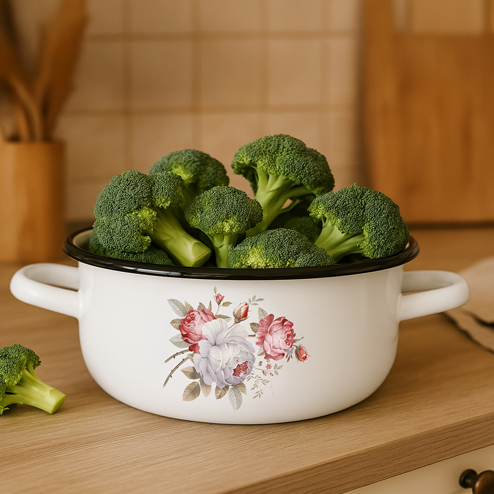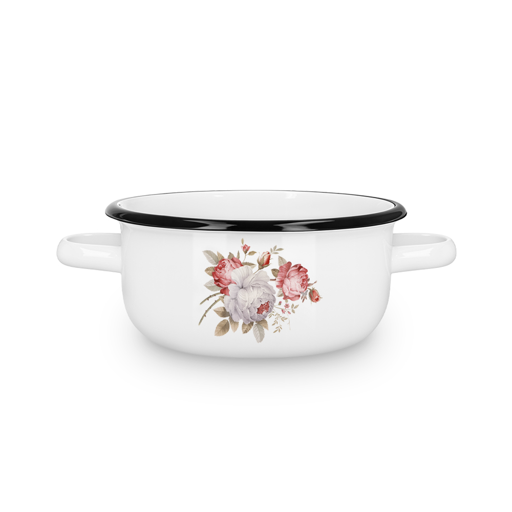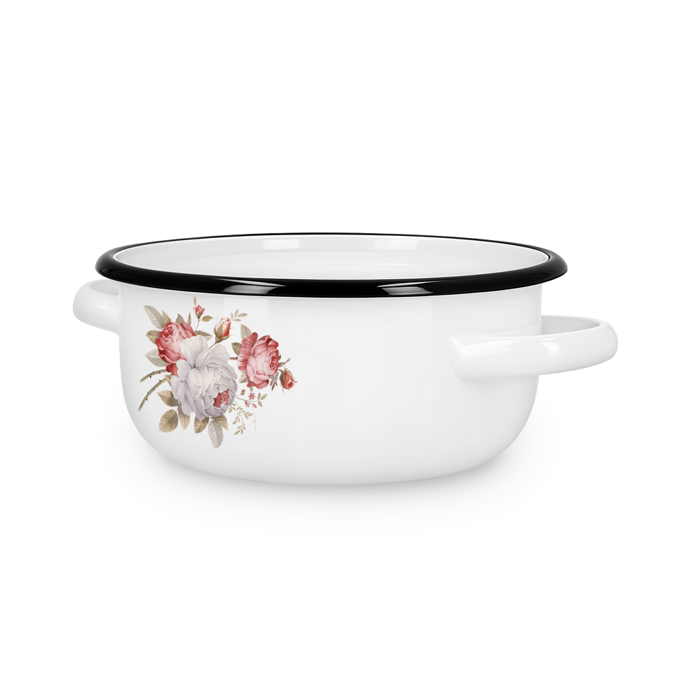 Rondel emaliowany z uszami biały róża marki Naczynia Olkusz to naczynie, które łączy elegancję z praktycznym zastosowaniem. Subtelny kwiatowy motyw na białym tle sprawia, że rondel pięknie prezentuje się w każdej kuchni. Dzięki pojemności 1,5 l i średnicy 16 cm doskonale sprawdza się do gotowania mleka, sosów, zup czy niewielkich porcji dań. Jednocześnie świetnie wygląda także podczas serwowania potraw na stole.