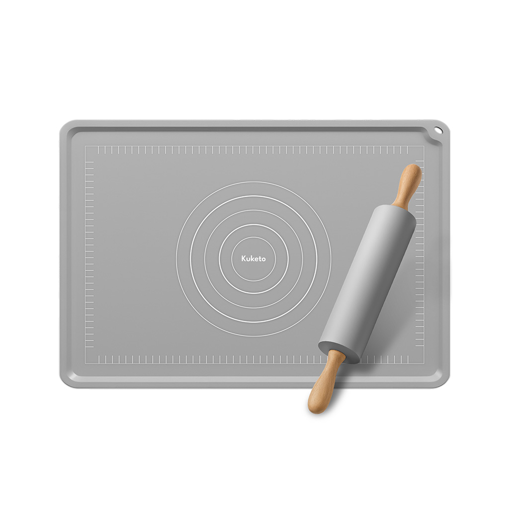 Silikonowy wałek w zestawie – dzięki niemu komplet stanowi gotowe i praktyczne narzędzie do pieczenia.