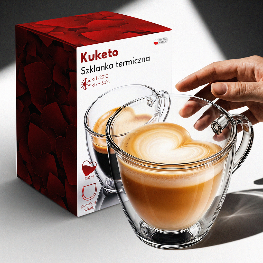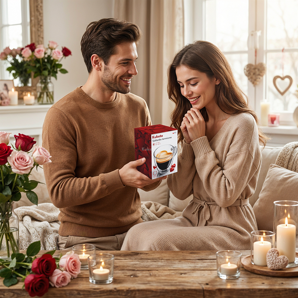 Jeśli szukasz upominku, który łączy praktyczność z estetyką, ta szklanka będzie świetnym wyborem. Sprawdzi się jako prezent na Walentynki, rocznicę, urodziny czy jako drobny gest bez okazji. Co więcej, eleganckie opakowanie podkreśla wyjątkowy charakter produktu. W efekcie otrzymujesz gotowy, stylowy prezent, który zachwyci każdego miłośnika kawy i pięknych dodatków do domu.
