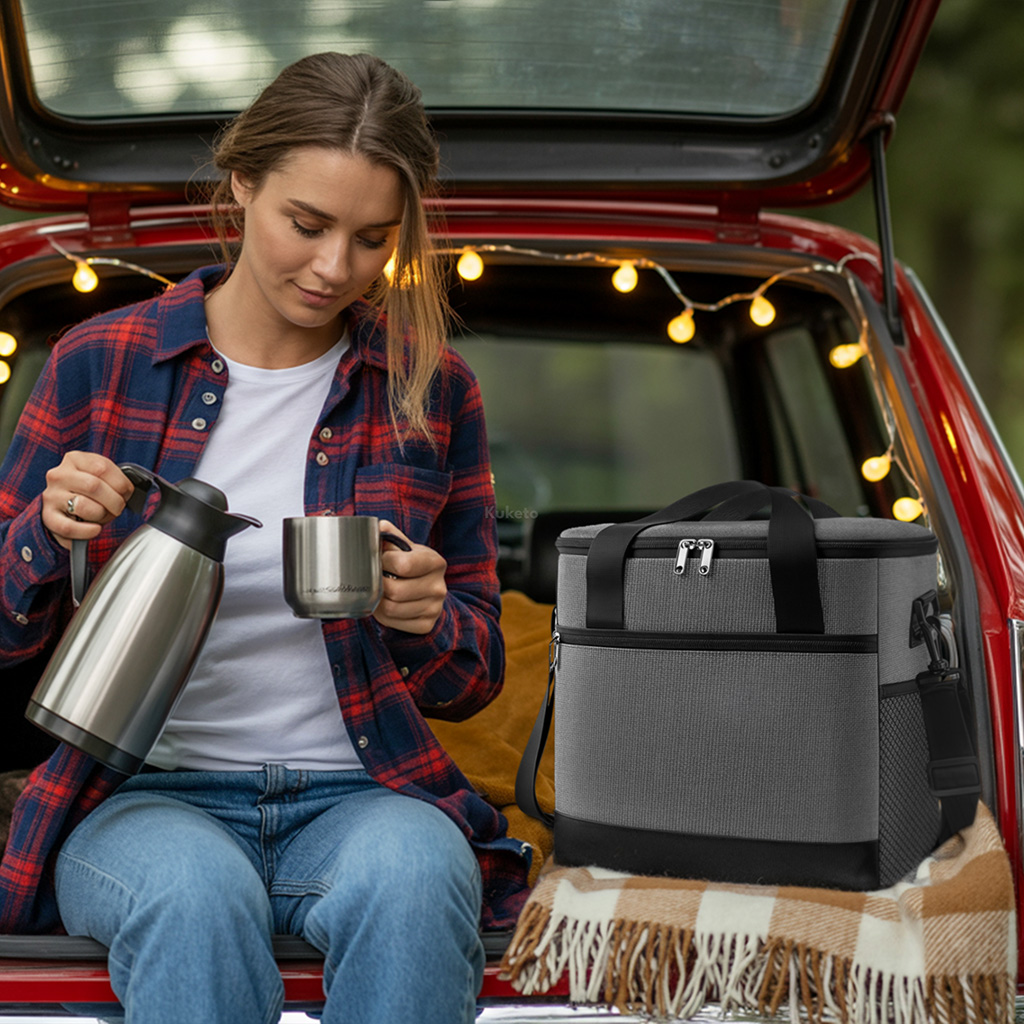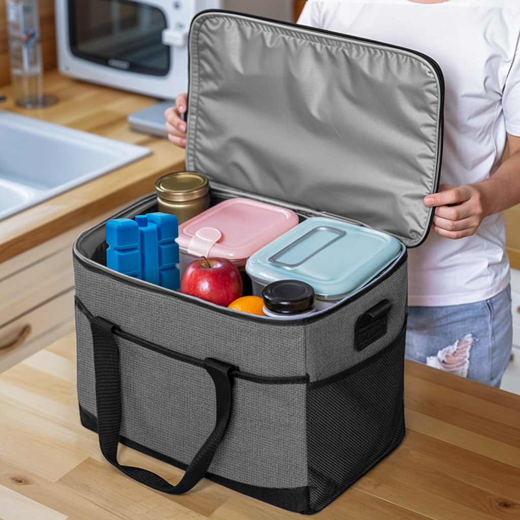 Ta składana lodówka turystyczna świetnie sprawdzi się podczas zakupów, wycieczek, podróży samochodowych, a także na plaży czy kempingu. Wnętrze torby zostało wykończone warstwą termoizolacyjną z pianki EVA oraz specjalną folią, które skutecznie chronią przed nagrzewaniem lub wychłodzeniem zawartości. Torba równie dobrze utrzymuje niską temperaturę zimnych napojów, jak i ciepło świeżo przygotowanych dań. Wodoodporna warstwa wewnętrzna sprawia, że nawet w przypadku rozlania płynu nie musisz się martwić o przecieki. Kompaktowy kształt i możliwość składania torby po użyciu sprawiają, że bez trudu zmieścisz ją w bagażniku, plecaku lub szafce.