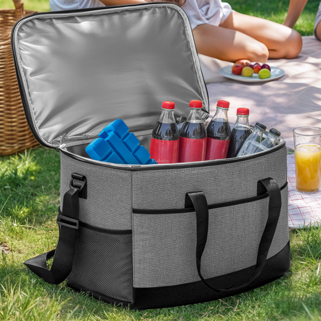 Idealna zarówno na weekendowy piknik z rodziną, jak i szybki wypad za miasto. Dzięki bocznym kieszonkom z siateczki można wygodnie przechowywać podręczne drobiazgi – jak sztućce, serwetki czy klucze. Bez potrzeby sięgania do głównej komory! Wytrzymałe szwy, mocny zamek oraz ergonomiczne uchwyty sprawiają, że torba Kuketo doskonale sprawdzi się również w codziennym użytkowaniu. Świetna jako torba na lunch do pracy. Dołączony wkład chłodzący można łatwo zamrozić i wykorzystać jako dodatkowe źródło chłodzenia, szczególnie w upalne dni. Praktyczna, estetyczna i solidna – to rozwiązanie, które łączy funkcjonalność z komfortem.
