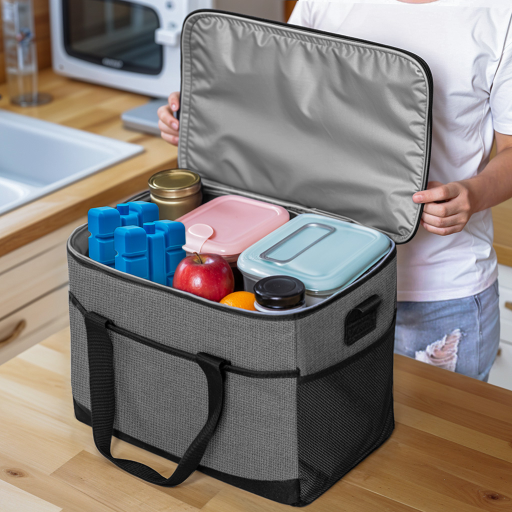 Zastosowanie nowoczesnych materiałów termoizolacyjnych, takich jak pianka EVA i folia odblaskowa, pozwala skutecznie utrzymać temperaturę przewożonej żywności i napojów – zarówno chłodnych, jak i ciepłych. Dzięki temu torba świetnie sprawdzi się przez cały rok: latem zapobiegnie rozgrzewaniu się zawartości, a zimą pozwoli transportować ciepłe posiłki. Wodoodporna warstwa wewnętrzna zabezpiecza przed przeciekaniem i ułatwia utrzymanie torby w czystości. Co więcej, torba jest składana – po opróżnieniu i złożeniu zajmuje minimalną ilość miejsca. To czyni ją praktycznym towarzyszem każdej wyprawy.